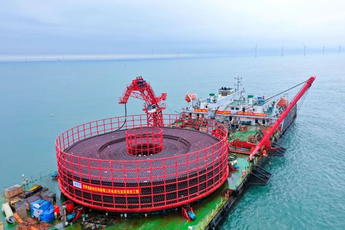 ▲ 成功應(yīng)用±400千伏交聯(lián)聚乙烯絕緣光纖復(fù)合直流海底電力電纜的江蘇如東海上風電場