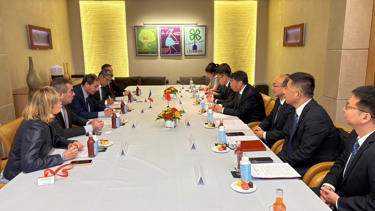 ? ? ? ? 在與法國電力集團董事長豐塔納會談時,劉偉平介紹了三峽集團發展歷程和國際業務情況。他表示,三峽集團與法國電力集團合作由來已久,自三峽工程建設階段以來雙方開展了各項良好合作,希望雙方在清潔能源開發、科技創新等領域進一步加強務實合作。豐塔納對劉偉平一行的到訪表示歡迎。他表示,三峽集團是全球水電行業的龍頭企業,同時在清潔能源領域也取得了顯著成績,希望雙方在水電、海上風電、抽水蓄能等領域加強合作,共同推動清潔能源發展,實現互利共贏。
