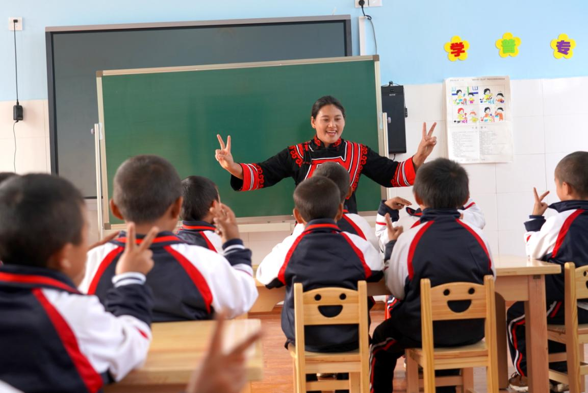 圖1 幼兒教師為彝族兒童開展普通話教學