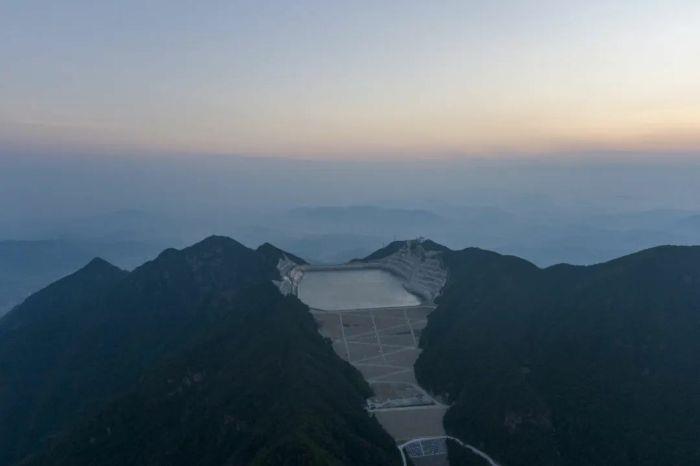 清晨時分,千米海拔的青山之巔,層層薄霧隨風飄散,長龍山電站上水庫水量逐漸蓄滿,仿佛一汪云間天池,水面微波蕩漾蓄勢待發,等待著用電高峰的到來。“