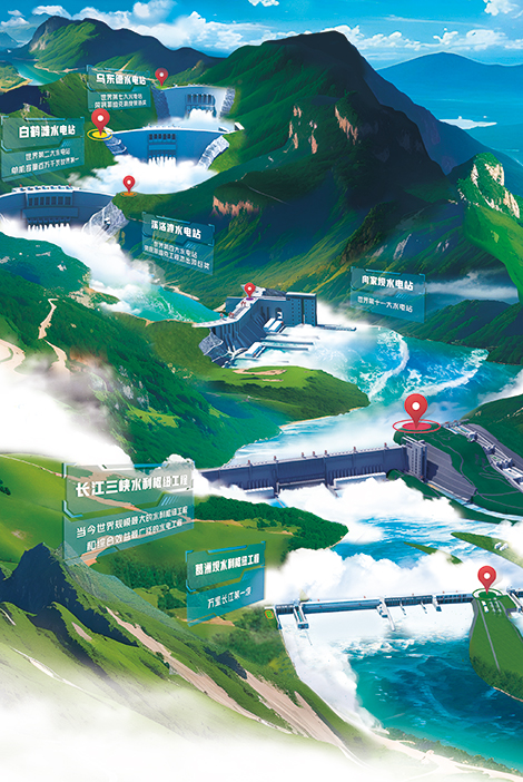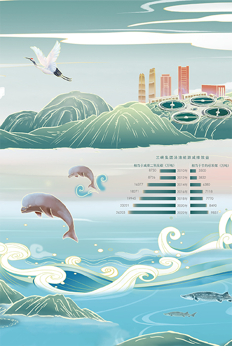 從層巒疊嶂的瞿塘峽、巫峽、西陵峽起筆,表達了三峽集團從三峽出發(fā)的地理淵源和從建設(shè)三峽工程開啟的初心使命。