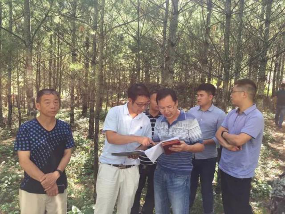 劉松(左二)下鄉(xiāng)檢查工作。
